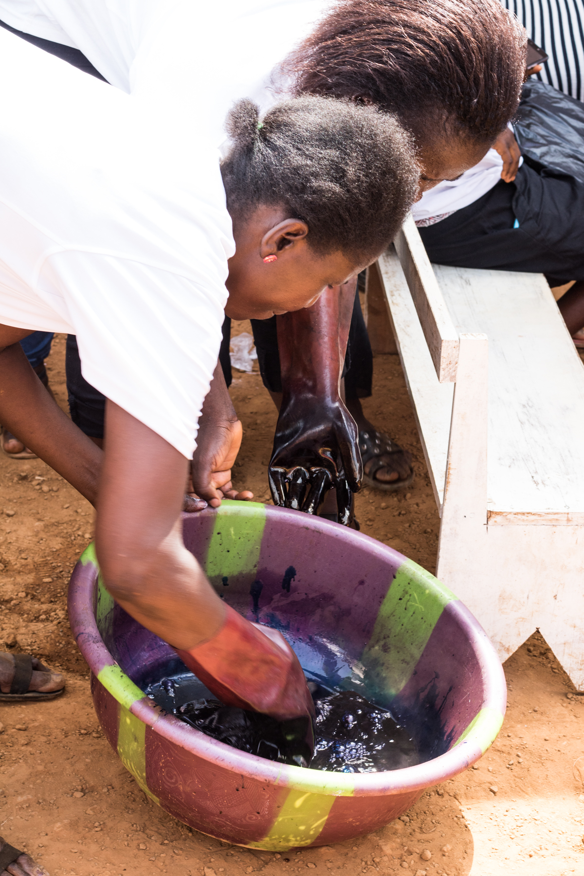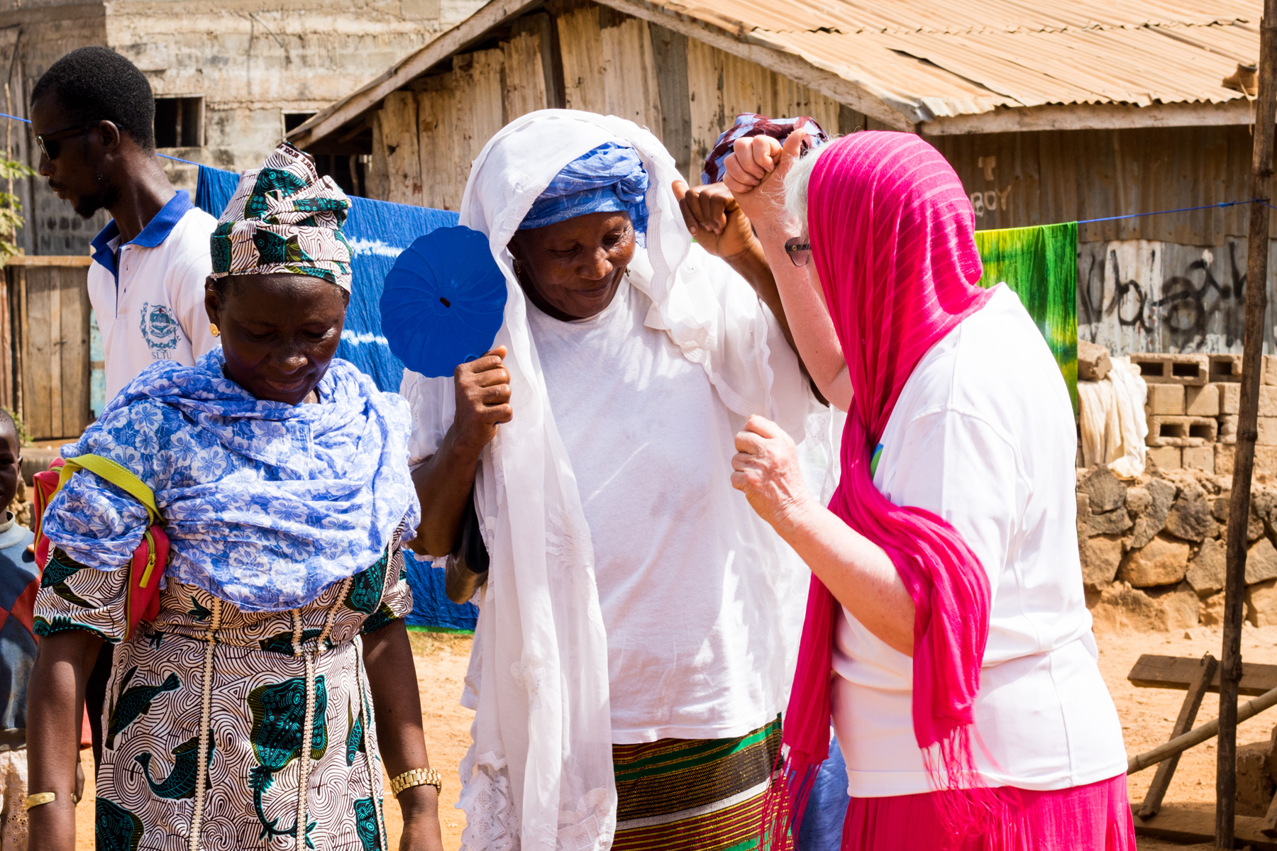 After the performance we were able to watch the women demonstrate their new skills of gara dying and sandal embellishment. The tailor, who is training interested students to use the sewing machines funded by ARET, demonstrated how quickly he could measure someone and produce tunics. Of course we were all measured and before we left we were proudly wearing our colourful tunics. In addition we purchased some cloths, sandals and ordered additional tunics. I understand that the profit from the sales will go into a communal fund.